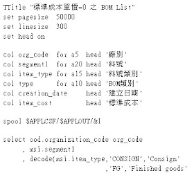 2) 撰寫一個 SQL File, 裡面包含 "設定各 Column 標題" 與 "spool 輸出檔案" :