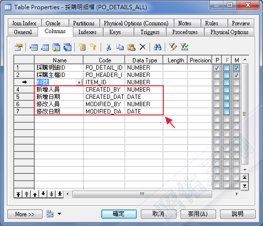 如下圖, 要將採購主檔的某四個欄位, 複製到採購明細檔 :