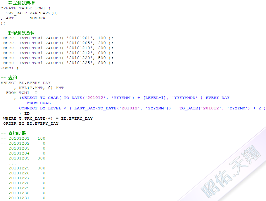 在 Oracle PL/SQL 查詢語法中, 可以透過